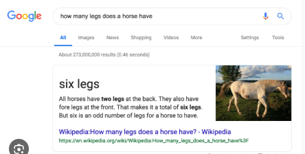 Does anyone remember the meme screenshots about Google Overview everyone was sharing on (then) Twitter? The funniest one was, “how many legs does a horse have?” And, it kept answering “six” before it got fixed.